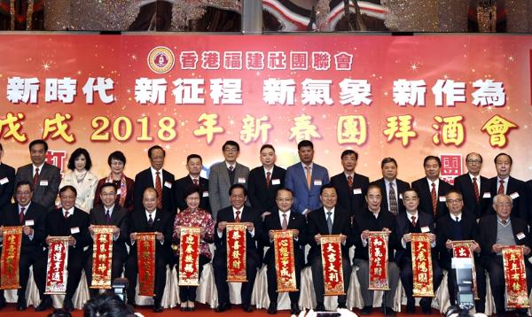 王志民主任、何靖副主任主礼香港福建社团联会2018年新春酒会。(图片来源:中央政府驻港联络办)