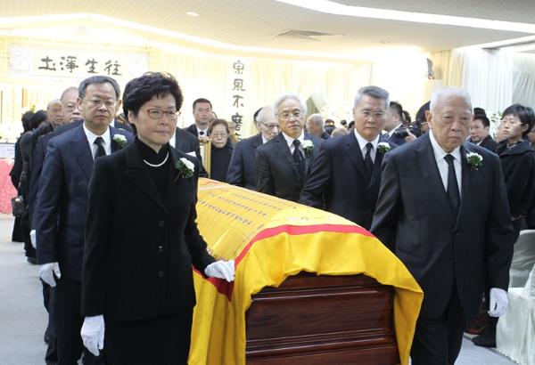 黄兰发副主任与董建华、林郑月娥等共同扶灵。(图片来源:中央政府驻港联络办)