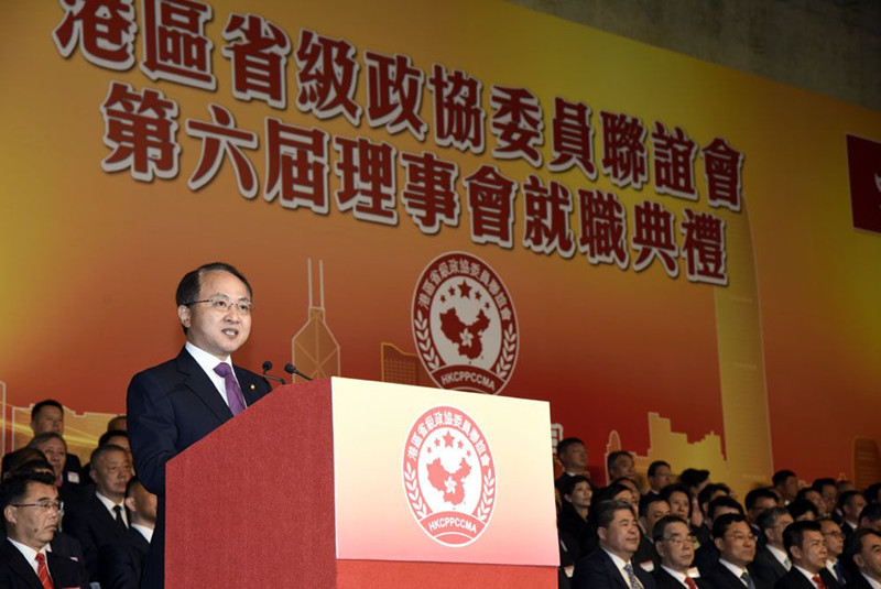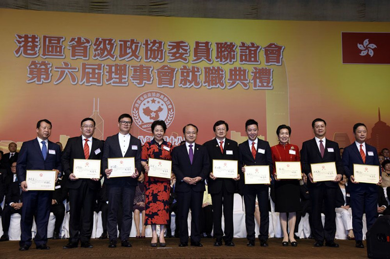 本网讯 4月18日晚,港区省级政协委员联谊会第六届理事会就职典礼在香港会议展览中心举行。我办主任王志民和香港特区行政长官林郑月娥应邀出席并致辞。全国政协副主席梁振英,全国政协港澳台侨委员会主任朱小丹、中华海联会副会长苏波,外交部驻港特派员公署特派员谢锋,我办副主任仇鸿、谭铁牛,解放军驻港部队副政委陈亚丁等共同主礼。内地有关省区市政协和统战部领导、联谊会会员及香港各界人士共1800余人出席典礼。