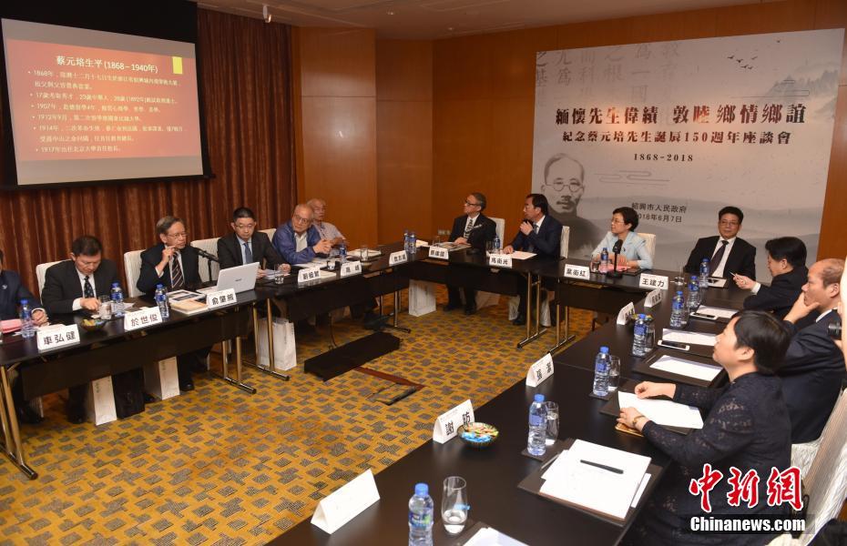 6月7日,浙江省绍兴市政府在香港尖沙咀举办“缅怀先生伟绩 敦睦乡情乡谊”——纪念蔡元培先生诞辰150周年座谈会。中新社记者 张炜 摄