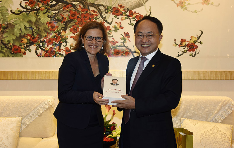会谈结束后,王志民向彭朗宁一行赠送了《习近平谈治国理政》英文版、《宪法》《基本法》合订本等书籍。
