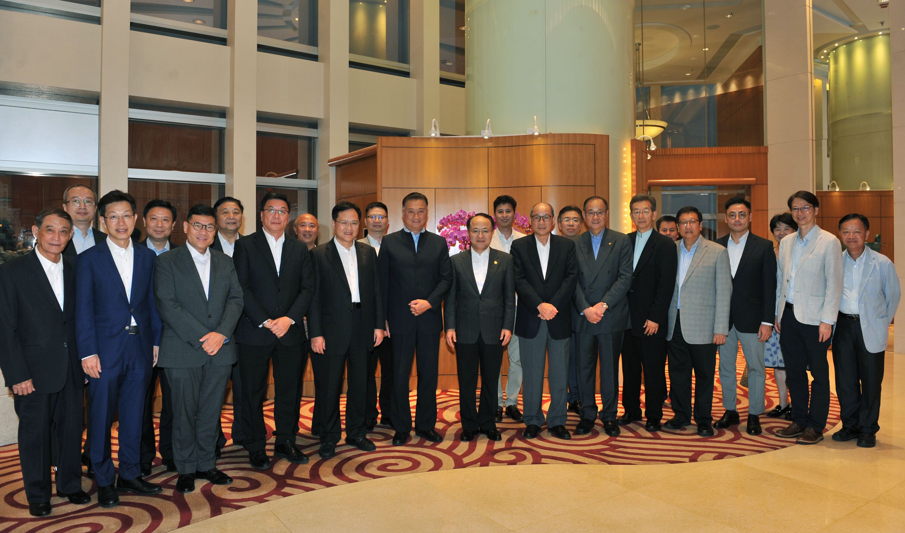 王志民主任、陈冬副主任与十八区区议会主席合影。(图片来源:中央政府驻港联络办)