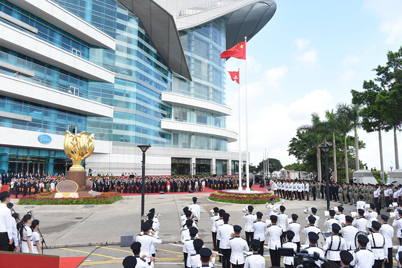 特区政府在金紫荆广场举行升旗仪式,庆祝香港回归祖国21周年。 (图片来源:新华社)