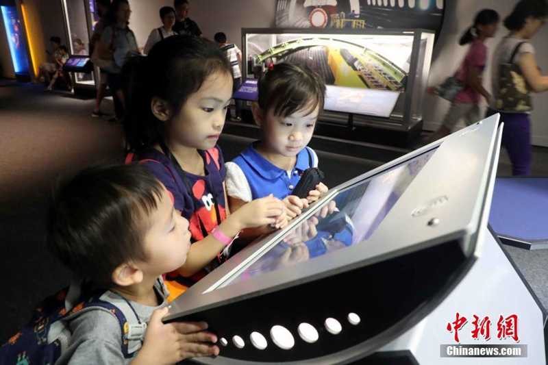 7月2日,小朋友趁假期到香港科学馆参观“超越天空”展览。位于香港九龙尖沙咀东的香港科学馆是香港一所以科学为主题的博物馆,是香港每年平均参观人次最多的博物馆。中新社记者 洪少葵 摄