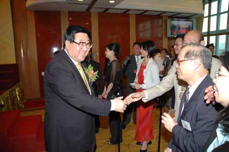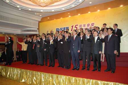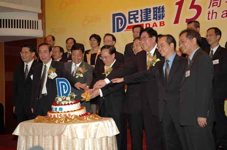 高祀仁主任,王凤超、周俊明副主任、王如登主任助理7月10日应邀出席了民建联在中区大会堂举办的15周年会庆酒会。高主任与行政长官曾荫权、驻港公署特派员吕新华等担任主礼嘉宾,并和王凤超、周俊明副主任一起与全国人大常委曾宪梓、立法会主席范徐丽泰、全国政协常委何鸿燊、基本法委员会副主任梁爱诗、特区政府三司十二局官员等主持祝酒仪式。酒会气氛热烈,有近700百名来宾参加,社工部等部门负责人应邀出席。