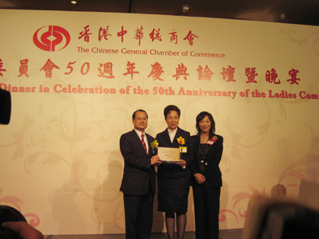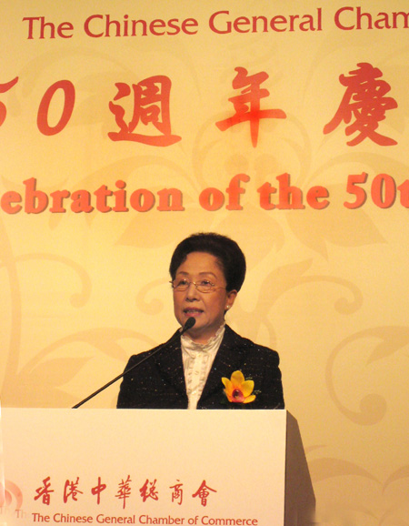 2008年12月5日晚,中联办副主任郭莉应邀出席香港中华总商会妇女委员会50周年庆典论坛暨晚宴,并与全国妇联副主席、书记处第一书记黄晴宜女士一同主礼。