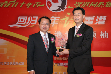 本网讯 2007年7月1日, “回归十年话香港”深港青年领袖论坛在深圳市威尼斯酒店举行。此次论坛由国务院港澳办。香港中联办和全国青联作为支持单位,香港特区政府和深圳市政府主办,深圳市青联、香港青联和香港青少年发展联会承办。全国青联主席杨岳、香港各界青少年庆回归十周年组委会执行主席曾智雄、中信资本首席执行官张懿宸、腾讯控股有限公司董事会主席兼首席执行官马化腾、香港青协总干事王易鸣、香港青少年发展联会主席陈振彬等在论坛上分别发表演讲,来自深圳、香港的200多名青年领袖出席论坛,共话深港情谊,纵论回归十年。许多青年领袖在论坛上高度认同胡主席讲话内容,表示要继续加强青少年的国民教育,开展青少年赴内地交流活动。