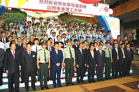 主礼嘉宾、驻港部队官兵与理工大学师生合影