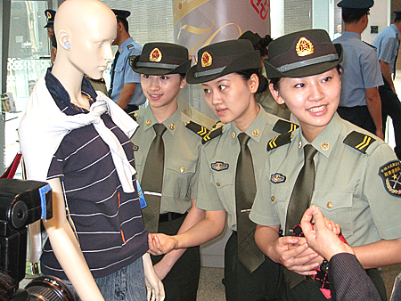 驻港部队女兵对具有纳米科技的时装很感兴趣