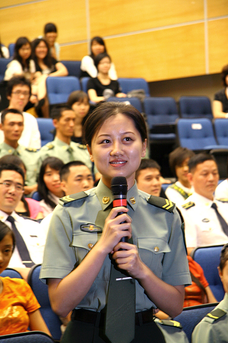 驻港部队女兵回答理大同学们的提问