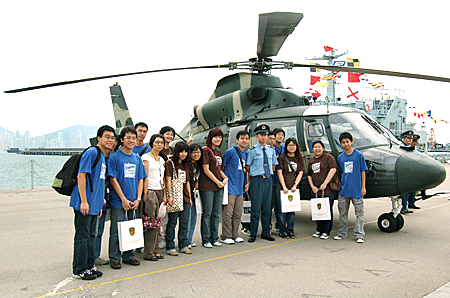 本网讯 “驻港部队与大学生互访联谊活动”分项活动之二“军民同心迎奥运”于2007年10月13日在驻港部队昂船洲海军基地举行。本次活动在往年“大学生军营开放日”的基础上,突出“军民同心迎奥运”新主题,社会认受性较高,香港12所高校学生代表、香港各界青少年迎奥运系列活动委员会代表以及政界、学界嘉宾和驻港部队官兵共800人参加。