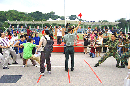 驻港部队与香港大学生拔河比赛气氛热烈