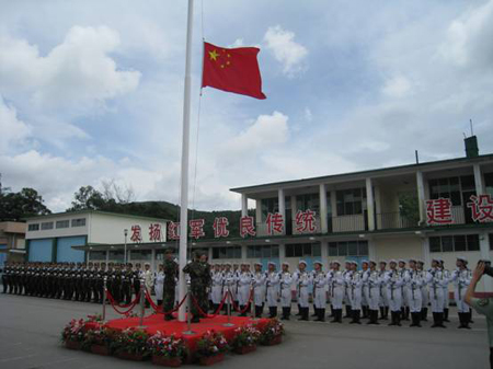 参加夏令营的学员举行升旗仪式