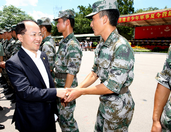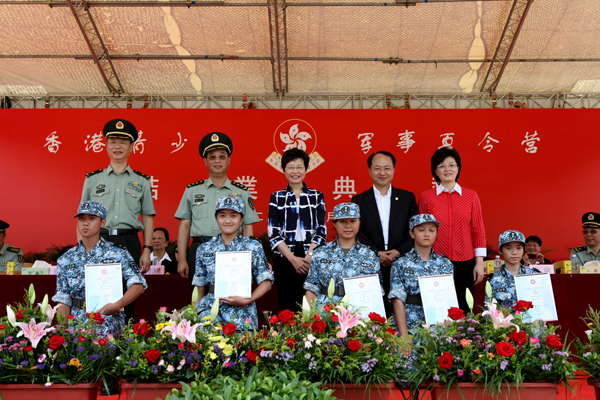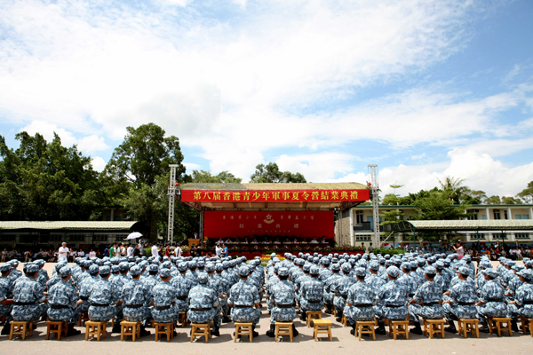 本网讯 7月29日上午,由群力资源中心、解放军驻港部队以及香港特区政府教育局联合主办的第八届香港青少年军事夏令营,在驻港部队粉岭新围军营举行结业礼。香港青少年军事夏令营发起人及名誉主席董赵洪娉、驻港部队政委岳世鑫、中联办副主任王志民、外交部驻港副特派员姜瑜、特区政府政务司司长林郑月娥等出席结业礼并担任主礼嘉宾。