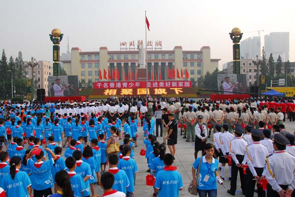 本网讯 “相聚国旗下——千名香港青少年走进美好新家园”活动近日在成都天府广场举行,来自25个香港青少年团体以及四川省的1500余名青少年共同参加了隆重而庄严的升国旗仪式。四川省委常委、宣传部部长吴靖平,副省长黄彦蓉,省政协副主席曾清华等出席了仪式。