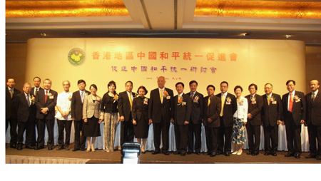 本网讯 2007年6月10日,香港地区中国和平统一促进会主办、《大公报》、《紫荆》杂志协办的“促进中国和平统一”研讨会在尖沙咀洲际酒店举行。国台办副主任叶克冬应邀出席并致辞。会议邀请全国人大基本法委员会副主任梁爱诗和中联办台务部部长邢魁山作主题发言,两岸三地专家学者也在会上发言。香港各界近200人参加研讨会。当晚举行了“庆祝香港回归祖国十周年”联欢晚会,中联办副主任黎桂康应邀出席并致辞。香港和统会董事会主席陈守仁、会长岑永生、中国和平统一促进会副秘书长王安南等共400多人出席。