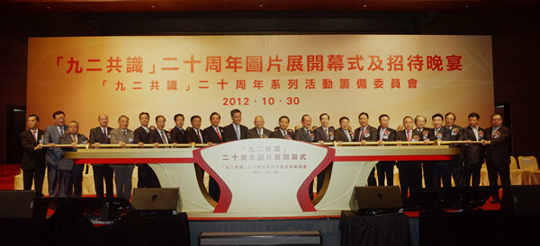 来自两岸、香港、澳门及海外逾400名嘉宾为“九二共识”20周年图片展揭幕。