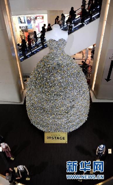 12月24日,在香港铜锣湾希慎广场,行人乘电梯经过6米高的晚装造型圣诞树。近日,香港各大商场纷纷推出不同主题的圣诞装饰,让顾客在享受购物乐趣的同时,感受浓浓的圣诞气氛。 新华社记者赵宇思摄