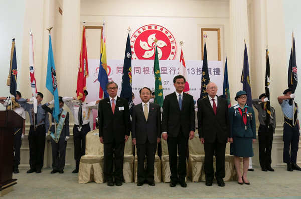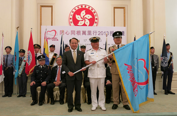 7月17日,“同心同根万里行2013”授旗仪式在香港礼宾府举行。中央政府驻港联络办副主任王志民与特区政府行政长官梁振英等嘉宾出席并为活动授旗。