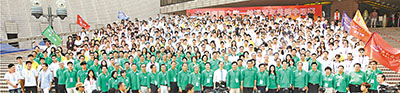 “共和国之旅-桂港青年共筑中国梦”广西柳州专列团昨日举行起步礼,近600名青年将赴广西展开为期4天考察交流,图为嘉宾与专列团青年合影。 潘达文 摄