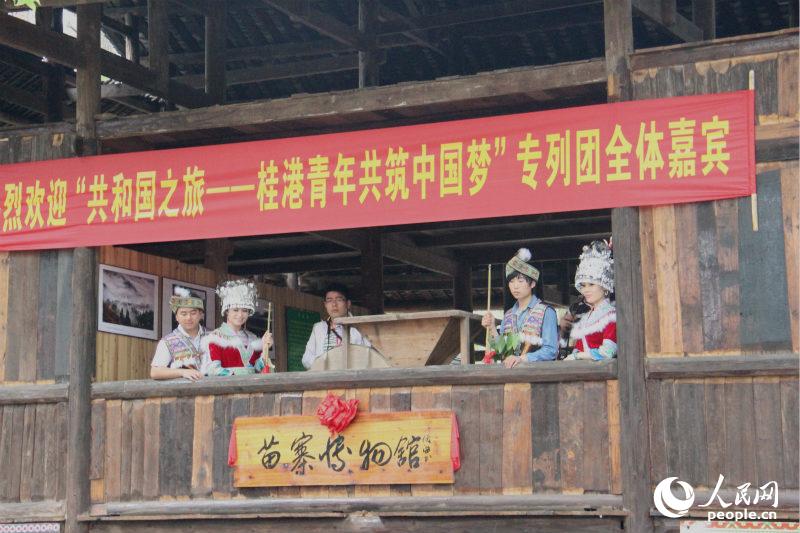 广西青年身着民族服装迎接香港青年。(摄影:曹海扬)