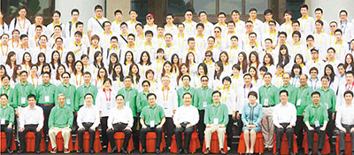 言出必行的彭清华书记下午果然穿上团服在联欢会上出现,他再次对大家欢聚在广西柳州共话同胞情、共筑中国梦表示欢迎,勉励年轻人为实现国家富强、民族复兴、香港繁荣稳定承担责任和使命。他说:”年轻人要有梦想、有担当、有责任,国家才有希望,把自己与国家命运联系起来,一同来实现梦想。”