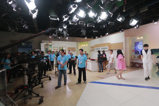 参访团员在湖南卫视演播室。(图片来源:中央政府驻港联络办)