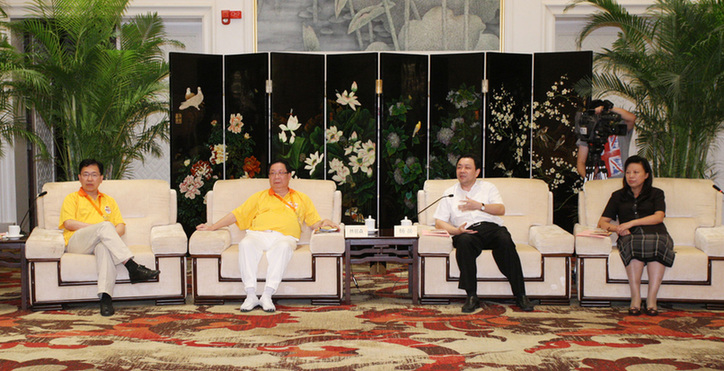 福州市领导会见访问团主要嘉宾。左起:刘林、林铭森、杨岳及雷春美。(林少权摄)