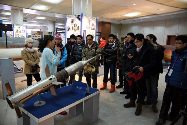 学生们参观哈尔滨工业大学航天馆。图片来源:中央政府驻港联络办)