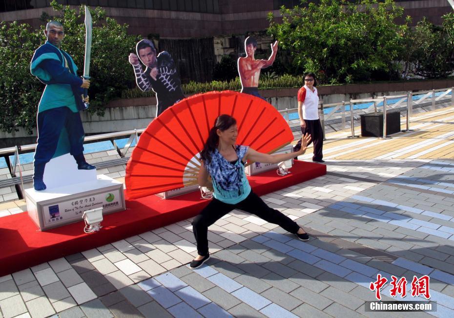 香港回归20年,现代都市中的中国传统文化习俗持续发扬光大。图为香港市民在晨运中练习传统中国功夫。中新社记者 洪少葵 摄