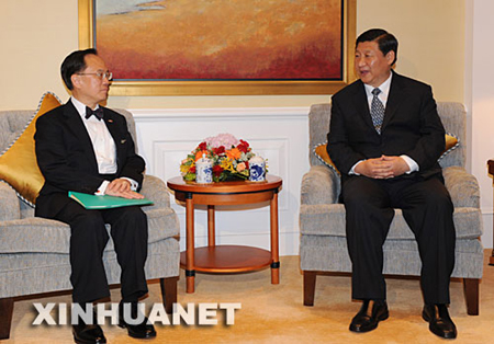 7月6日,中国国家副主席习近平在香港下榻的酒店会见香港特别行政区行政长官曾荫权并听取奥运会马术比赛安保工作的情况汇报。新华社记者黄敬文摄