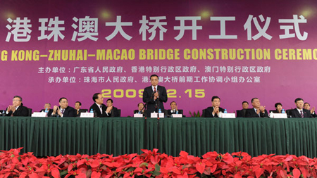 中共中央政治局委员、广东省委书记汪洋,香港特别行政区行政长官曾荫权,澳门特别行政区行政长官何厚铧和候任行政长官崔世安参加开工活动。曾荫权、何厚铧和广东省、国家发展改革委、中国交通建设集团负责人在开工仪式上致辞。