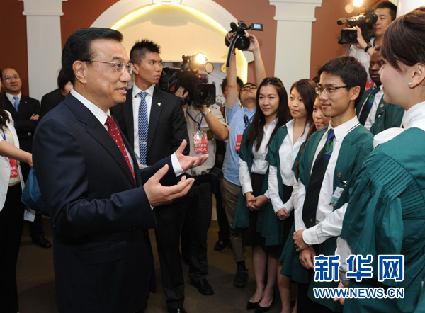 8月18日,香港大学举行百周年校庆典礼,国务院副总理李克强出席典礼并致辞。这是李克强与香港大学学生亲切交谈。 新华社记者 马占成摄