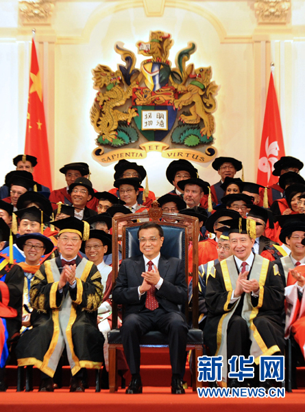 8月18日,香港大学举行百周年校庆典礼,国务院副总理李克强出席典礼并致辞。这是李克强(中)在典礼上。新华社记者 马占成 摄